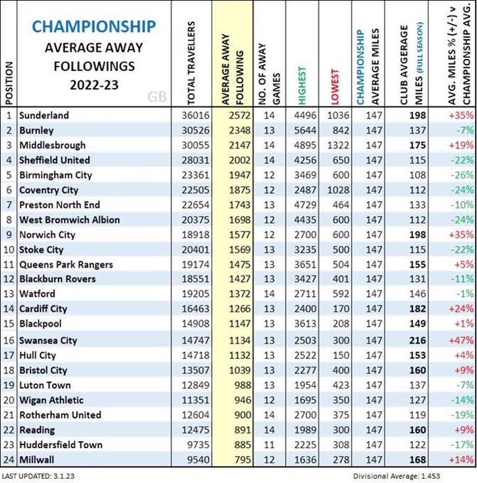 Sunderland to Burnley is a 220 mile round trip. Further than Burnley to Wolverhampton, we pretty much had a row to ourselves at Wolves away last season. It’s easy to sing when you’re winning, great supporters.Andreshotboots wrote: ↑Mon Mar 20, 2023 4:05 pmTotally agree. The media love in with how brilliant Newcastle and Sunderland fans are is a joke.