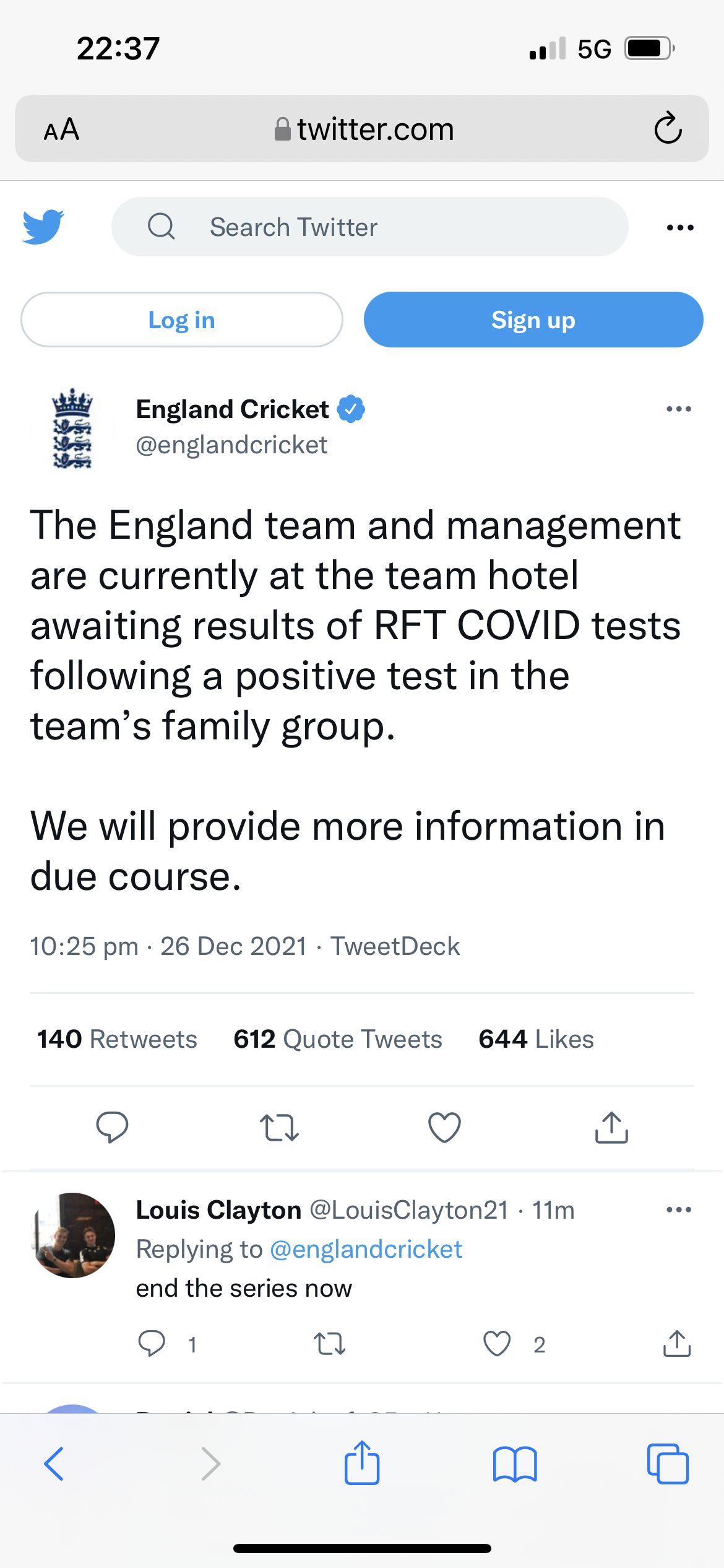 Positive test in one of the England players’ family group. Shall we just null and void the series now?