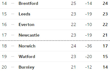 Surprisingly there are about 6 sides below or around us that could still go down. Sadly all these sides are capable of bringing off a win against the odds as we have been seeing with Watford, Leeds and Brentford. In the case of Leeds Kevin Phillips is due back imminently and Bamford at a later date which will boost them. Were we still able to "win ugly" like we once could, I suspect we would be around 15th right now if not higher