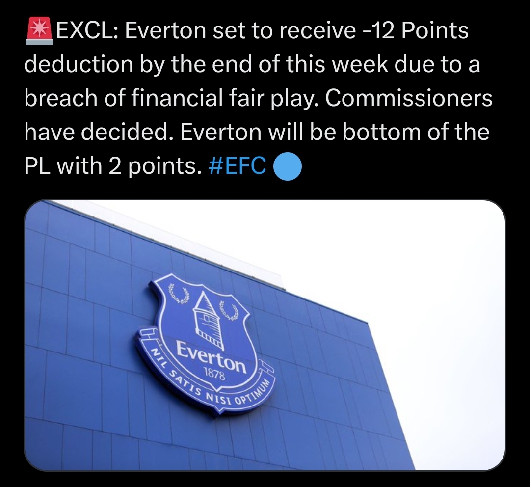 Be interesting now to see how they deal with Man City and Chelsea. If the punishments are proportionate to that given to Everton then they could, in theory, both be relegated.